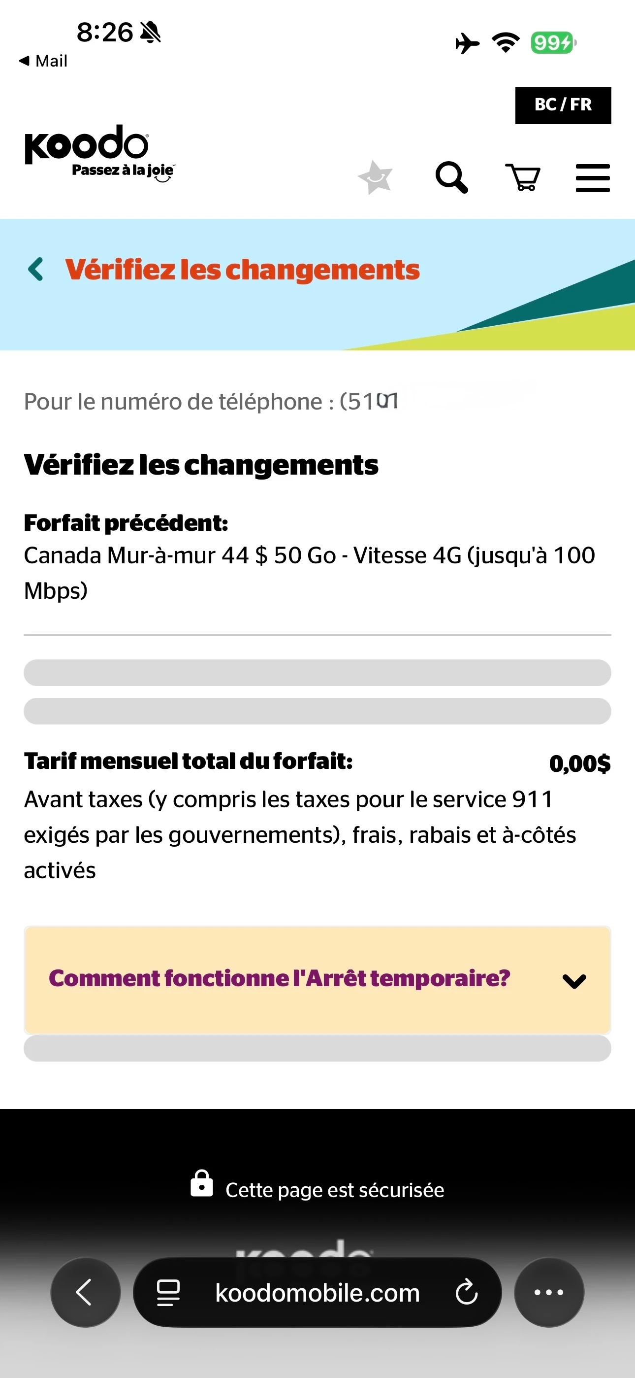 Bonjour, je suis actuellement pas au Canada et je voulais arrêter temporairement mon abonnement mensuel. Le problème c’est que la page reste en chargement mais n’aboutit jamais. J’ai réussi à écrire à un agent et il n’a pas pu régler mon problème disant qu’un autre agent prendra le relais mais personne ne m’a contacter.