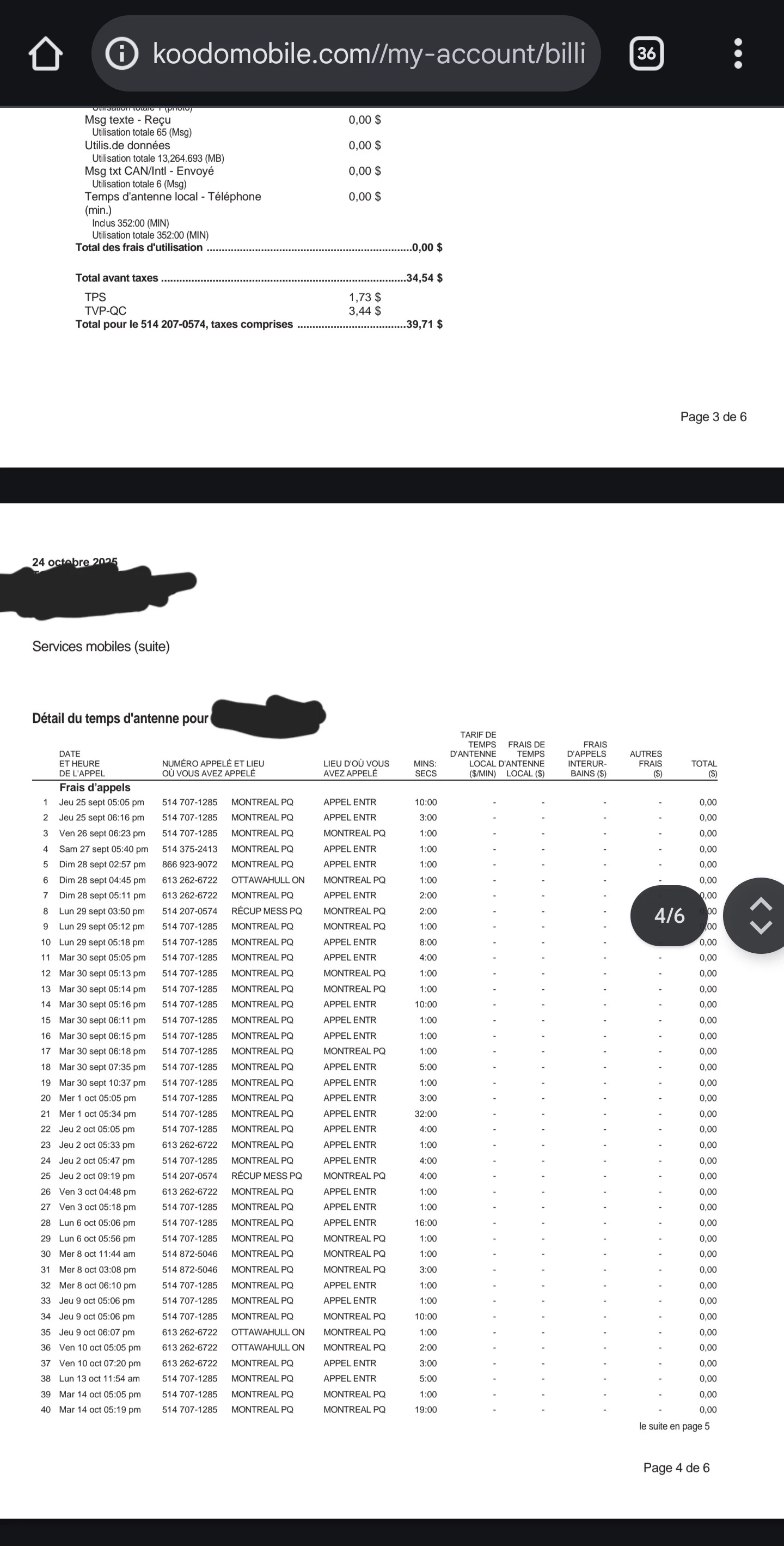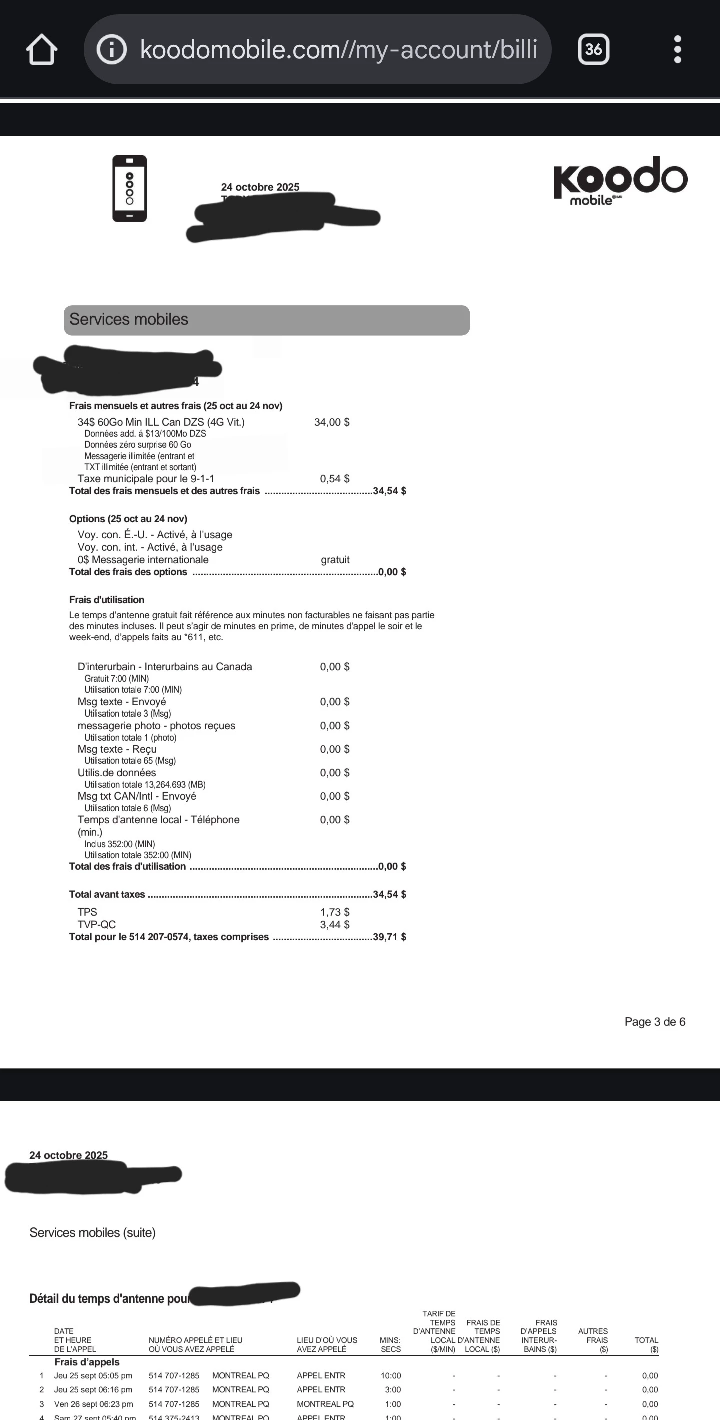 Pourriez-vous poster une capture d'écran dans la section « Services mobiles », page 3 ou 4 ? Veillez à masquer les informations personnelles telles que votre numéro de compte, votre numéro de téléphone, etc.