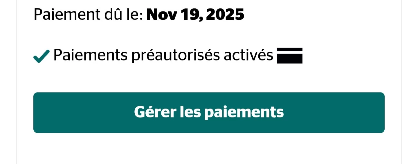 Lorsque vous vous connectez à votre compte libre-service, voyez-vous votre prélèvement automatique configuré avec vos coordonnées bancaires ?