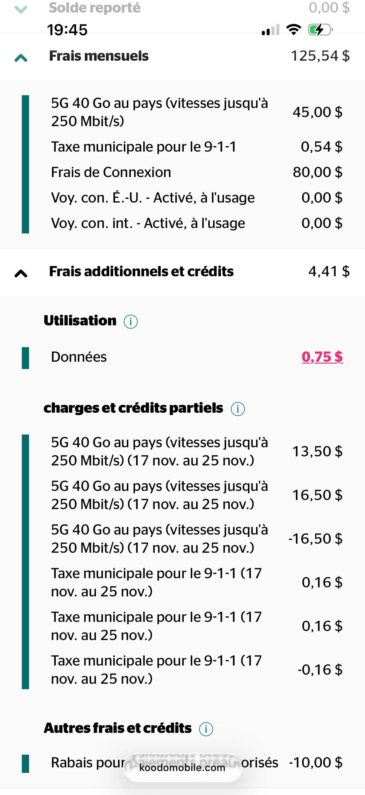 Honnêtement, je ne comprends pas comment on arrive à 149,41 $ alors que mon forfait est censé être de 45 $.