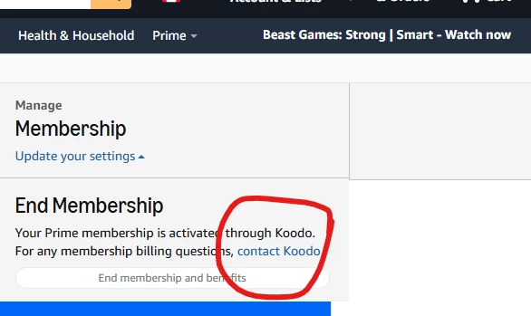 Quand j’ai parlé à un employé de Koodo la semaine dernière, ils m’ont dit que je devais aller sur le site Amazon pour faire le changement (désabonner le compte de Monsieur pour qu’ensuite, 24-48h plus tard, je puisse lier mon compte Amazon avec mon abonnement EnContinu+).