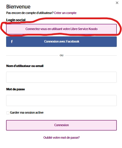 Connectez-vous en utilisant votre Libre-Service Koodo Connexion avec Facebookou